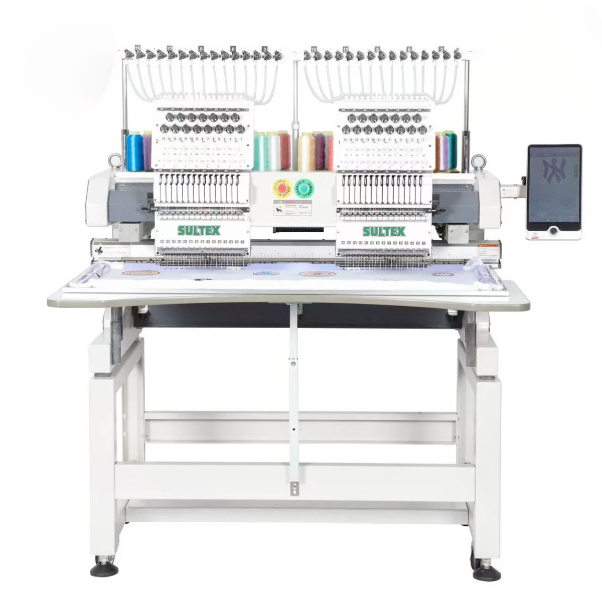 Esta bordadora tubular de 2 cabezales es versátil: sirve para gorras, prendas en corte y trabajo en pantógrafo en un mismo equipo.